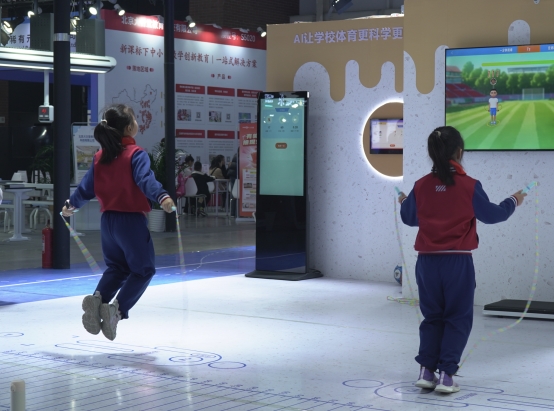 “我要再来一次!”小宇已经是第三次排队,每次成绩都在进步。大屏幕上,AI实时显示:1.45米,超过同龄平均值20厘米,系统还给出了“起跳蹬地有力,落地稳定”的专业评价。