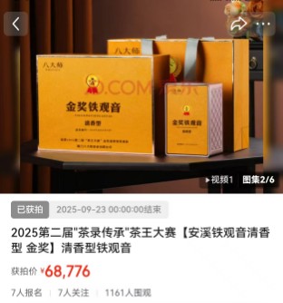 尤为引人瞩目的是,部分获奖茶品通过京东拍卖平台公开竞拍,柯清华女士选送的金奖清香型铁观音,经过13轮激烈竞价,最终以68,776元高价成交,创下本届拍卖会单品成交纪录,充分体现了市场对其品质与价值的高度认可。