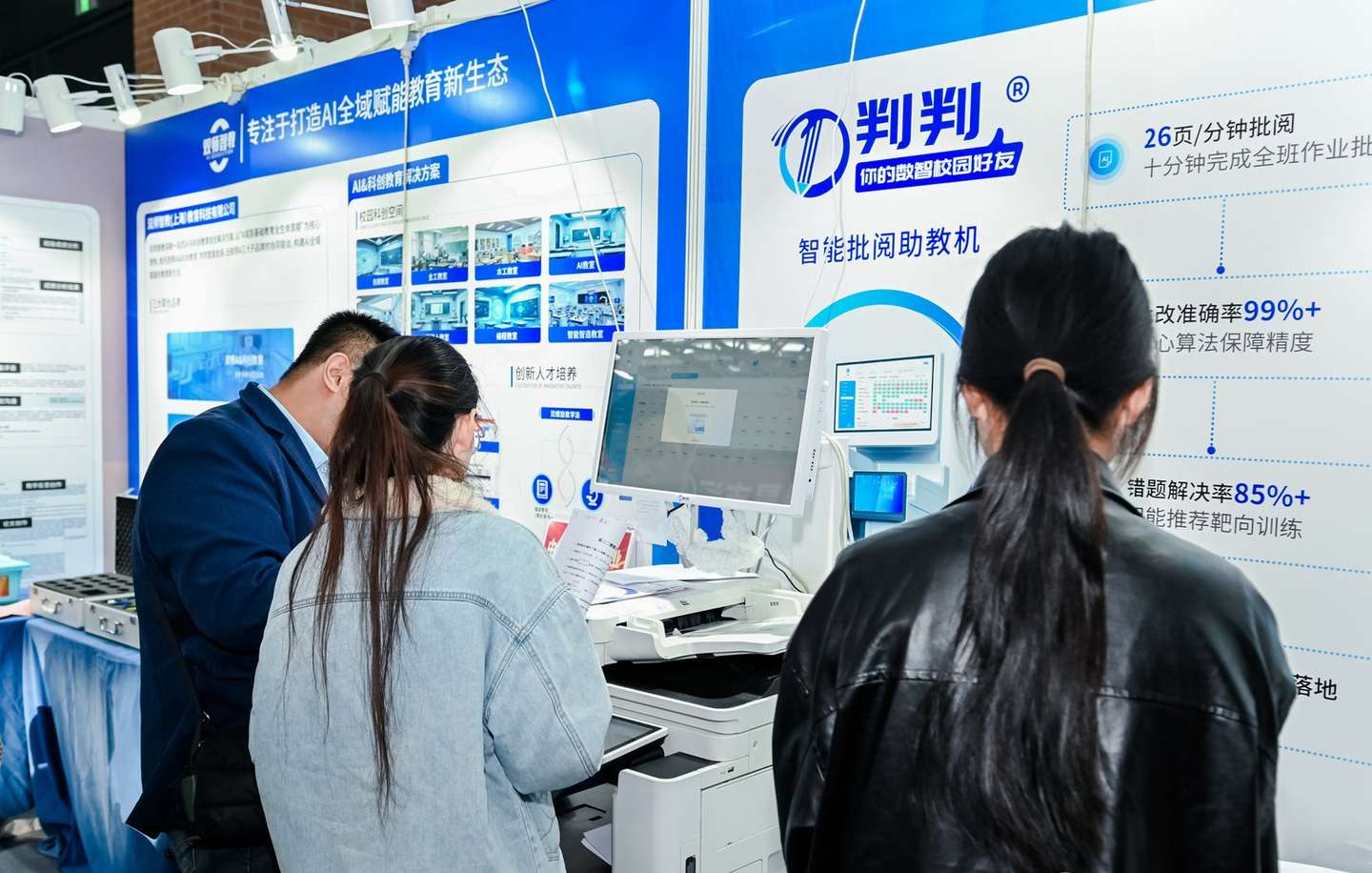 判判智能批阅助教机于2023年10月发布,以OCR、机器学习等新创技术为支撑,整合人工智能与数据管理分析,提供快速自动批改、学情分层跟踪的系统方案,实现个性化教学闭环。目前,该产品已在全国超400所中小学落地,推动“人工智能+教育”应用,为教师减负提效、学生个性化学习提供支持。展会现场,教育工作者体验其自动批改功能后,对高效准确的批改效果与学情报告赞不绝口。