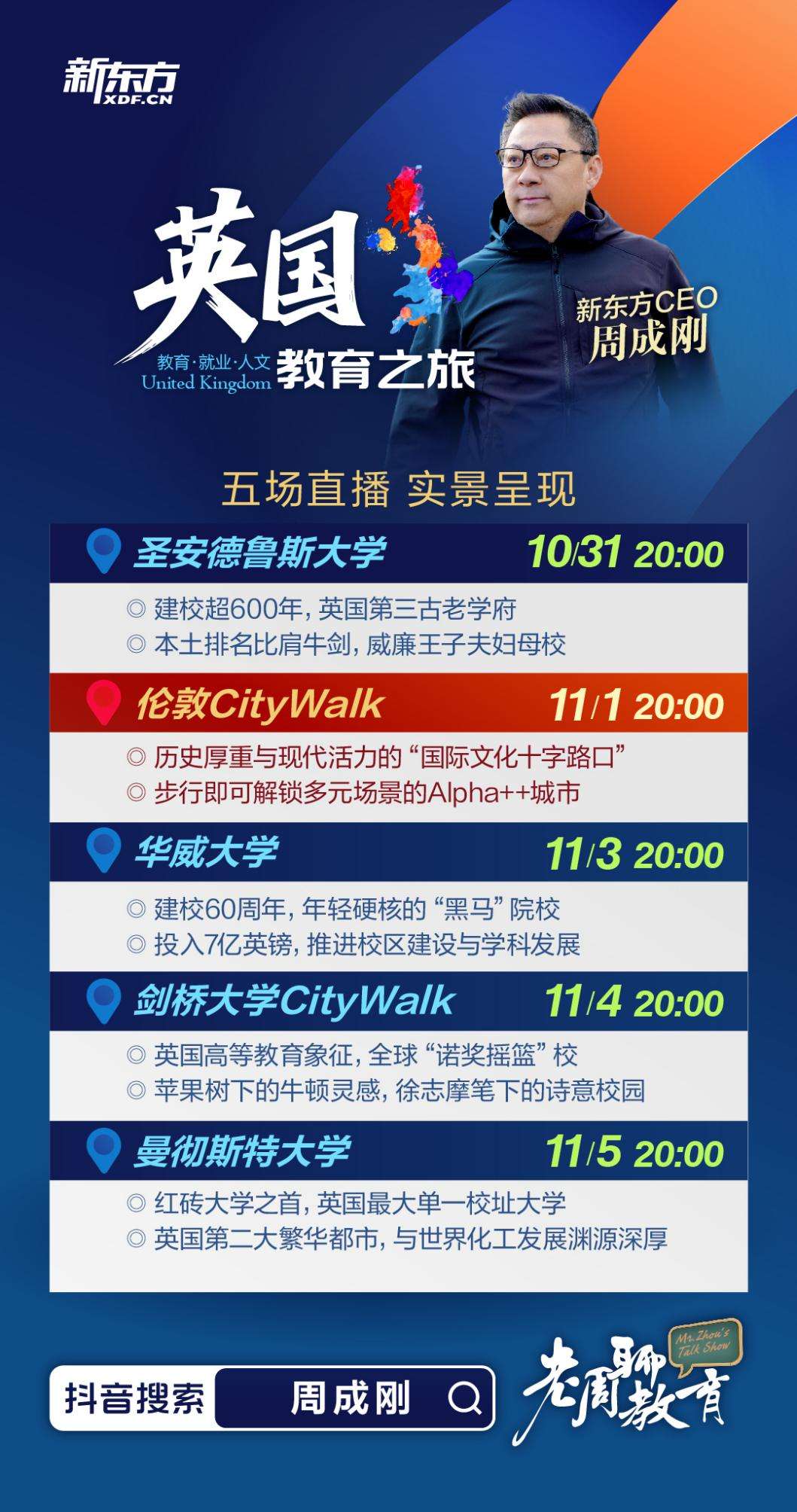 10月31日,新东方名校探访团英国教育系列直播将正式开启。镜头所及,不只是石砌的古老学府与历史的荣光,更是无数年轻人书写未来的可能性。