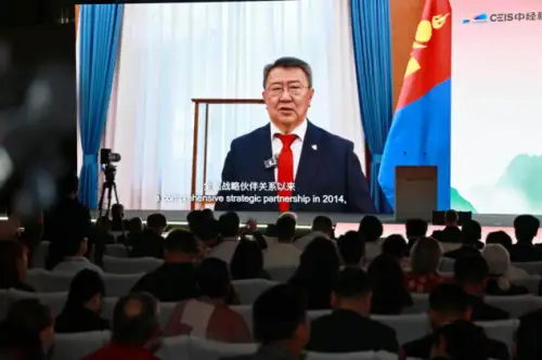 蒙古国驻华大使恩赫包勒德发表视频致辞,向论坛的举行致以热烈祝贺,并表达了蒙古国对深化与中国特别是与贵州省合作的积极意愿。他表示,蒙中两国是山水相连的友好邻邦,自建立全面战略伙伴关系以来,双边合作在各领域取得显著进展。他回顾了蒙古国驻华大使馆人员此前赴贵州参加相关活动的经历,用“生态美丽的多彩贵州”的赞誉,表达了对通过本次活动进一步拓展与贵州省合作关系的期待。他说,相信通过这样的交流活动,将更好地了解彼此的文化特色,为增进相互理解奠定良好基础,为推动国际经贸合作与各领域交流提供重要契机。