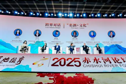 跨界对话现场,著名演员、导演、编剧、流金傲威ORVIE创始人苏菲·玛索,观复博物馆创办人、著名文化学者马未都,中国酒类流通协会会长秦书尧,茅台集团党委副书记、总经理王莉,汾酒股份公司总工程师韩英聚焦“名酒+文化”,围绕“名酒:文化的载体与符号”“时间淬炼下的品牌故事与人文价值”“中西酒文化的美学互鉴与生活哲学”等主题展开深度对话,展示了酒文化跨越国界的生命力。