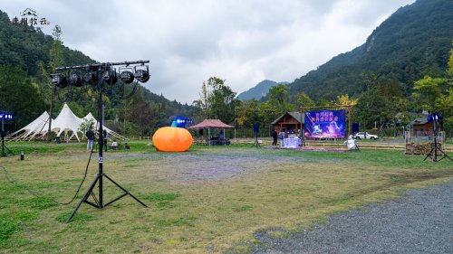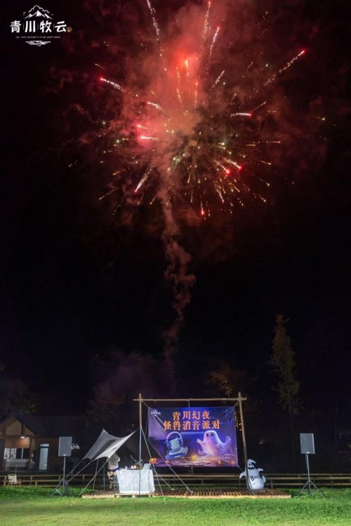当晚7点,耳机电音正式引爆!专业DJ带来的强劲音浪席卷山野,来宾们在开阔的草坪上尽情舞动,用热情点亮了龙门山的夜空。晚上8点,一场持续5分钟的绚烂烟花秀凌空绽放,将现场气氛推向最高潮。烟花落幕,节奏再起,狂欢热舞持续至晚上9点方才缓缓落下帷幕。