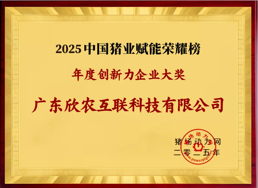 在近期举办的2025中国猪业赋能大会暨赋能荣誉榜颁奖盛典上,凭借在“AI+养殖”领域的技术创新与产业实践,广东欣农互联科技有限公司从众多优秀企业中脱颖而出,成功斩获“2025年度创新力企业”大奖,实力彰显科技赋能农牧产业的标杆力量。