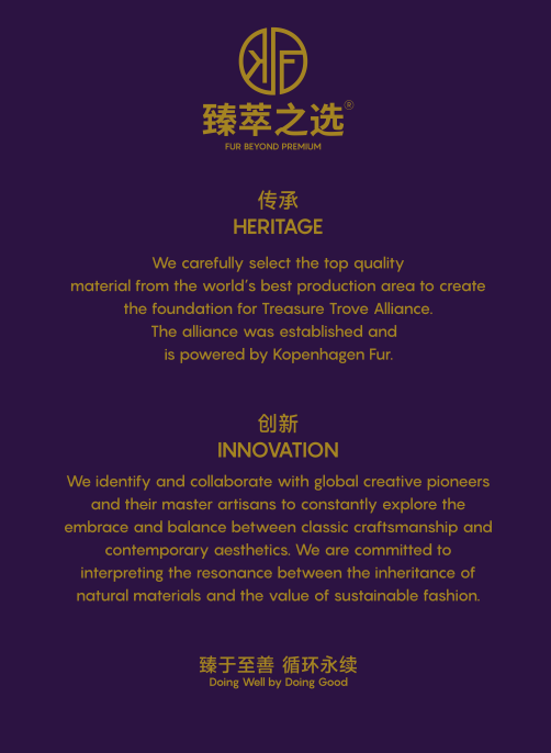 “臻萃之选”作为哥本哈根皮草旗下的一个专业高端天然皮草零售品牌联盟,自2018年启动以来,始终致力于推动天然皮草行业的高端化、专业化与可持续发展,旨在为消费者提供一个高品质、可信赖、标准统一的天然皮草产品的购买渠道专业指南。哥本哈根皮草每年都会通过一系列严格、标准的申请和审核流程,甄选头部皮草零售商,作为官方授权的零售合作伙伴。通过重塑线上高端皮草市场的秩序,实现天然皮草的高品质面料从农场到衣橱的一站式可追溯价值体系。所有“臻萃之选”联盟品牌,都可在哥本哈根皮草官方渠道进行查询,并被授权使用“哥本哈根皮草及臻萃之选”注册商标体系。