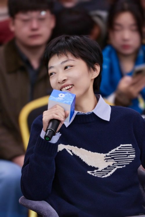 导演韩燕楠菲选择 Weekend Max Mara 秋冬系列针织与衬衫叠穿造型,以温润气场铺展柔韧力量。她的获奖作品《跷跷板定律》探讨人际关系中的微妙平衡与博弈,也呼应她本人在舞台与生活间的温柔坚韧。