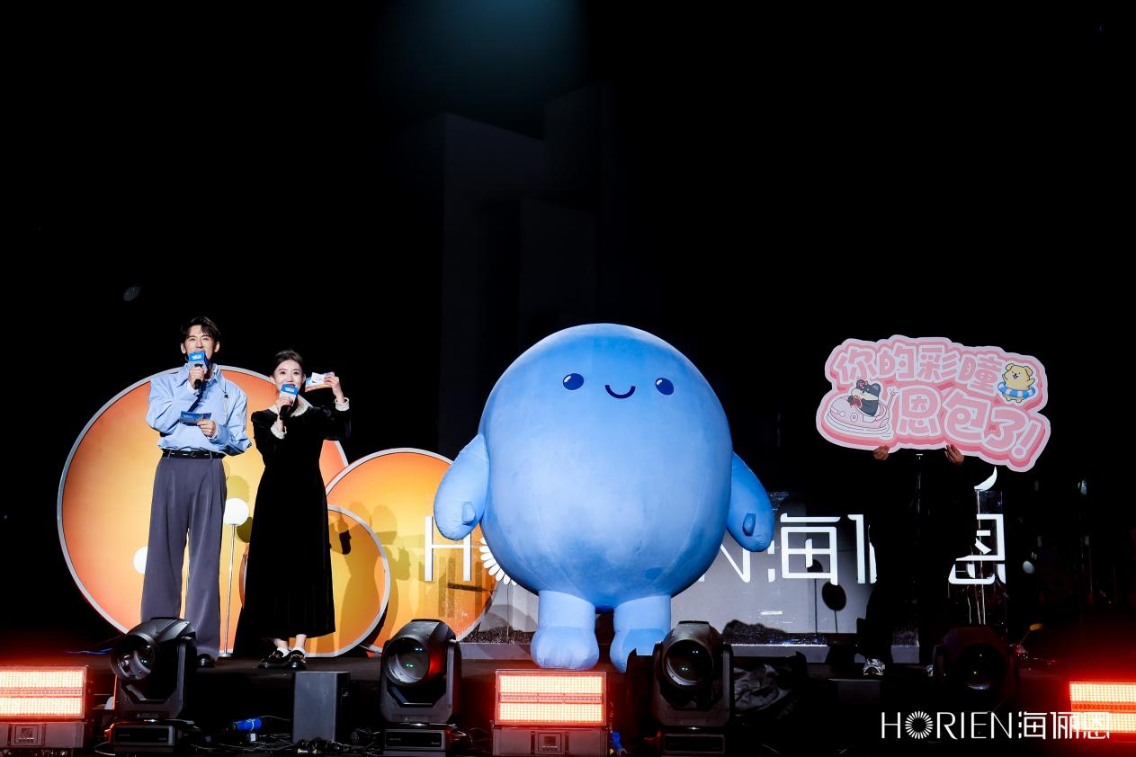 演出中,海俪恩并未选择在演出间隙生硬插入互动,而是敏锐捕捉到现场情绪持续升温的恰当时机,在观众参与度与情感投入度的峰值点,自然引入品牌环节。恩恩的登场方式延续了品牌一贯的萌系语言体系,和它一起上场的“你的彩瞳 恩包了”应援牌以轻松口语化的表达,在保持IP人设一致性的同时,完成了产品信息的有效触达。