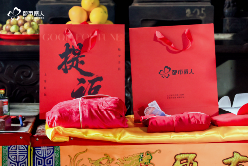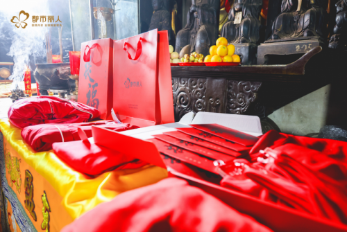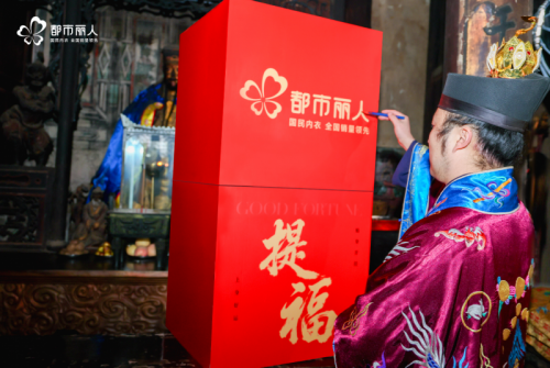 仪式尾声,随着斋醮祈福主持以灵笔在礼盒及产品周边上庄严开光,都市丽人全系新年红品正式完成了从寻常商品到承载文化祝福与美好寓意的“红运服饰”的华丽蜕变。
