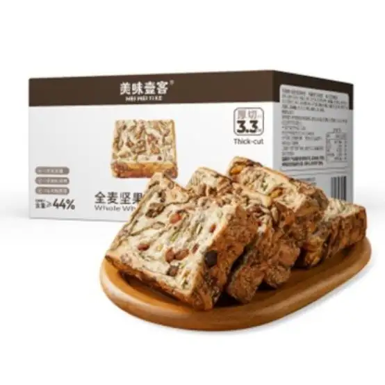 在产品方面,美味壹客食品围绕全麦、坚果等健康原料持续研发,先后推出全麦坚果欧包、全麦西梅厚切吐司、全麦坚果厚切吐司、低GI代餐面包、黑米青稞吐司等产品,配方简洁且注重营养搭配,既适合作为早餐主食,也能在健身前后提供持久饱腹感,满足日常与运动双重场景需求。