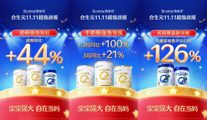 2025年双十一期间,合生元持续深化“奶粉+营养品”双轮驱动,构筑全方位婴童营养体系,全渠道GMV实现显著提升37%10,创历史新高,稳居婴童营养行业领跑阵营。