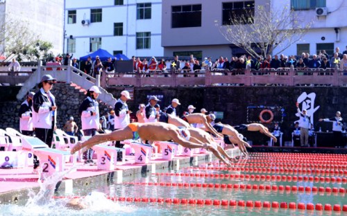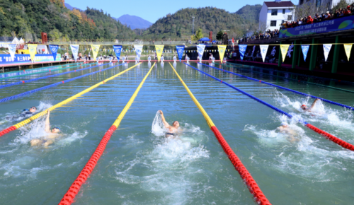 方前的底气,源于得天独厚的自然禀赋。作为钱塘江、瓯江、灵江和曹娥江“四江之源”的重要节点,始丰溪横贯方前全境,水质常年保持Ⅰ类标准,2米多深仍清澈见底,是国内少数符合高规格赛事条件的公开水域之一。双岩山的蝉形巨石静静伫立,为赛事增添了别样的人文底蕴。“方前的水域环境和办赛水平,得到了所有人的一致好评。”原国家游泳队总教练、浙江省体育局原副局长、浙江省游泳协会主席张亚东点赞,“在这样优质的自然环境中举办冬泳赛,不仅是对运动员的尊重,更是对‘体育与自然共生’理念的最佳诠释。”