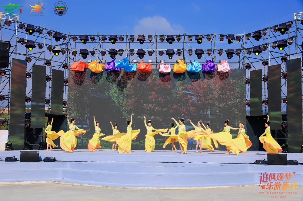 作为“舌尖上的新丰”的集中体现,“新丰特色一桌菜”隆重发布,二十二道融合客家风味与本地风物的佳肴,展现了美食与文化、产业的深度链接。舞蹈《秋枫行》则以艺术化的语言,将云髻山红叶的绚烂诗意呈现于舞台之上。开幕式最终在彩色布条纷飞飘扬与英歌舞巡游的热烈氛围中圆满礼成,象征新丰文旅绚丽新程的开启。